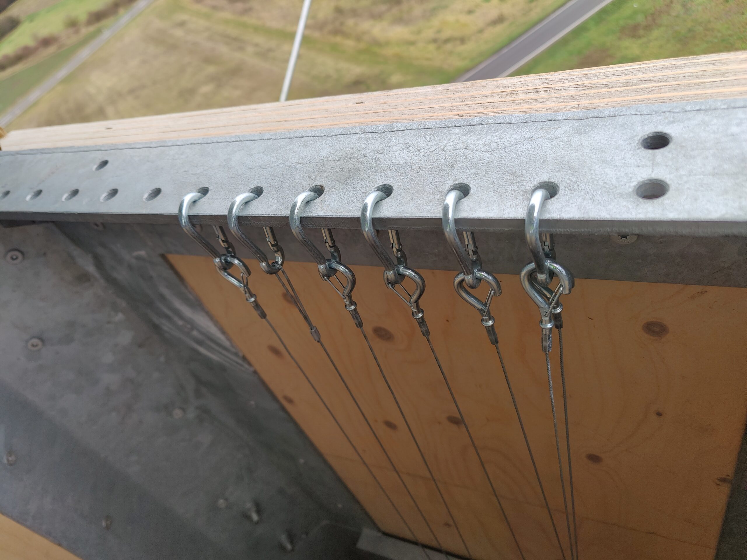 Castellum can be equipped with customer-defined steel lattice headframe eg. square 900 x 900 or whatever dimensions are suitable for a customer. Castellum can be also fully wooden, without a steel lattice on top. In either case, vertical antenna and RRU installation tubes or frames can be installed. Tower walls can be used as wall mounting points for RRUs and cable connection boxes.